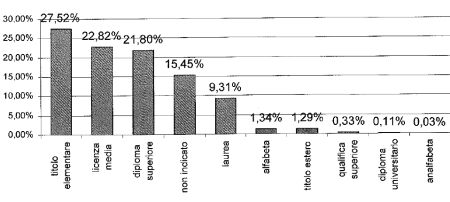Nel grafico è riportata la suddivisione per titolo di studio dei 54.366 residenti in un Comune al 31.12.2009