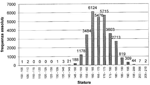 Nel grafico è riportata la suddivisione per classi di altezza dei 29.690 residenti in un Comune al 31.12.2009